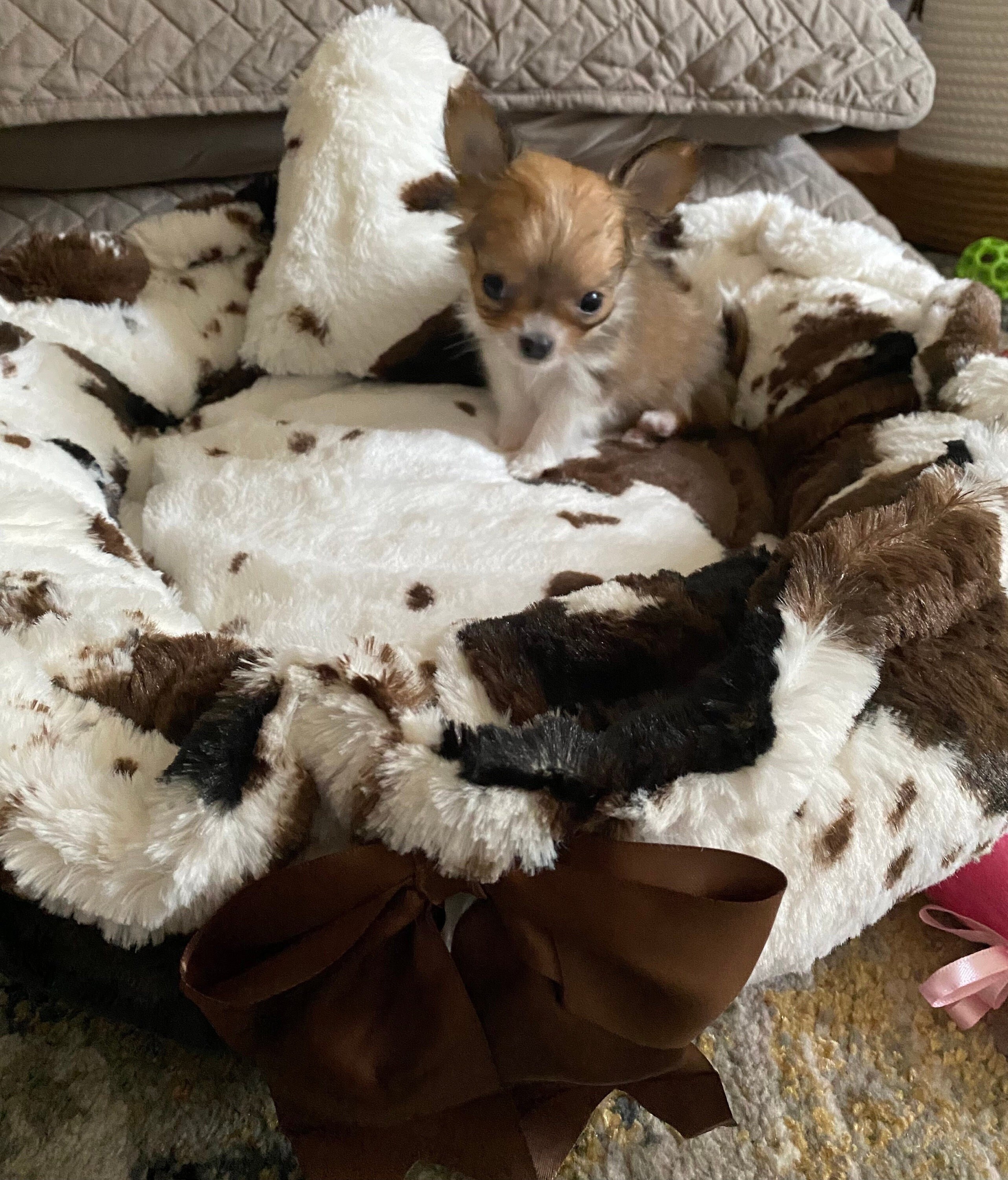 Cowabunga Plush Long Pile Minky Cow Pattern Dog Bed Etsy Uk